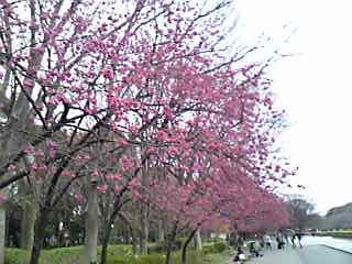 上野公園の緋寒桜は満開。