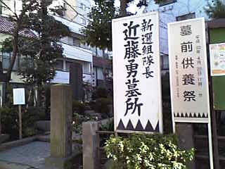 近藤局長の石碑は3mを越える大きな物で、両脇には芹沢や山南、
